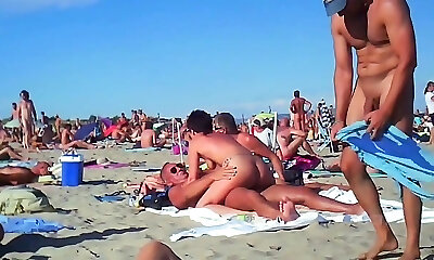Teen gals playing on a nude beach
