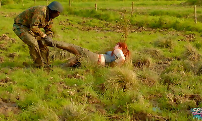 Nasty cutie caught in the forest by border patrol and is romped