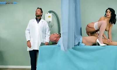 Lusty Petite Nurse with Immense Booty in Hot Threesome with Patients