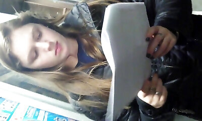 студентка-филиппинка вылизывает свою сочную киску на публике с видом под юбкой