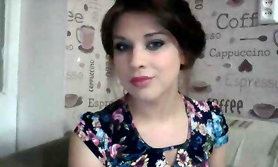 Brunette and her beau off in the kitchen Russian fucky-fucky on camera...