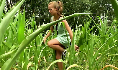 瘦骨嶙峋、初出茅庐的女孩蒂凡尼*塔图姆把她的内裤滴到户外