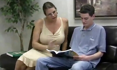 饥渴荡妇年轻的老师与热眼镜和连裤袜Teasting她的大家伙学生他妈的她的湿猫