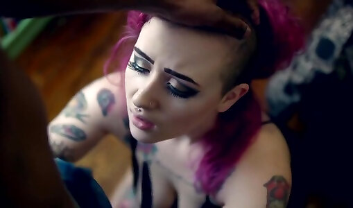 Mind-blowing inked monstrous bottomed girl Megan Inky takes double intrusion