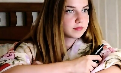 Amazingly beautiful teen with well-matured udders loves masturbating