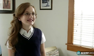 Super-hot redhead girl with pallid skin Dolly Little banged well in bedroom