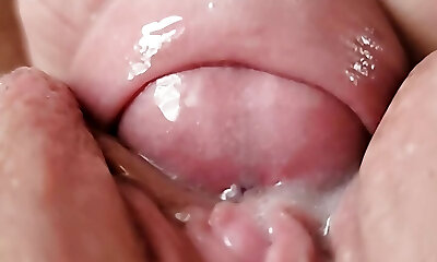 Gentle Stimulation of the Clitoris with a Cock. Penetration. Sperm Fountain. Woman Climax. Close-up.