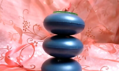 Asian teen fucks her extremely pumped pussy with big fake penis and drizzles