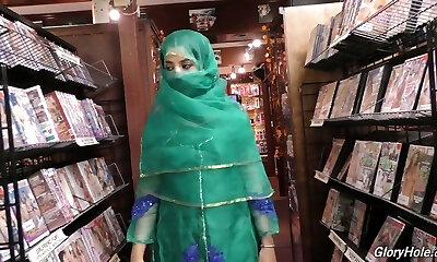 Hot Pakistani chick Nadia Ali sucks yam-sized dick in the glory crevice room