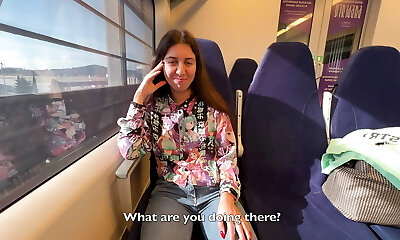 A guy traveler tempted a guy on a train and gave him a blowjob in public