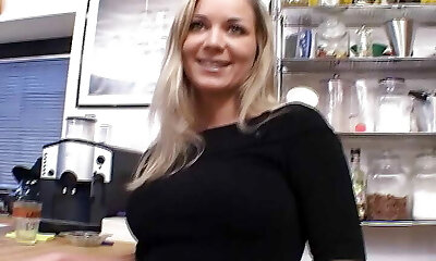 Super buxomy blonde from Germany enjoy masturbating in the kitchen