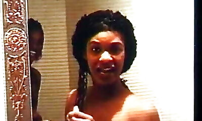 Two sexy black lesbians finger pulverize each other on the bed